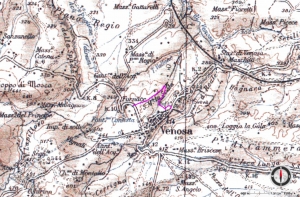 Appia tracciato Vallone del Reale a Venosa Distanza con altitudini: Km 4,350 Salita accumulata: m 481 Altitudine massima: m 423 Difficoltà: da moderato a facile Attività: escursionismo, visite guidate Valutazione: bello Terreno: strada lastricata e asfaltata (area urbana), strada sterrata e in parte selciata, fango in alcuni tratti, in alcuni tratti attraversa proprietà privata, equipaggiamento necessario. |