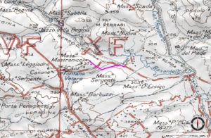 News Appia tracciato variante-modifica Vallone Fontana Vetere Distanza con altitudini: Km 1,489 Salita accumulata: m 0 Altitudine massima: m 338 Difficoltà: facile Attività: escursionismo, visite guidate Valutazione: bello Terreno: arato e spietrato, attraversamento terreni privati Nota: il tratto in questione è una variante-modifica che attraversa il Vallone Fontana Vetere |