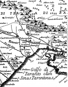 Dettaglio della carta di Domenico de Rossi (1714) nel quale compaiono casali medievali in territorio di Castellaneta